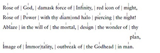 Rose of God, smitten purple with the incarnate divine Desire,