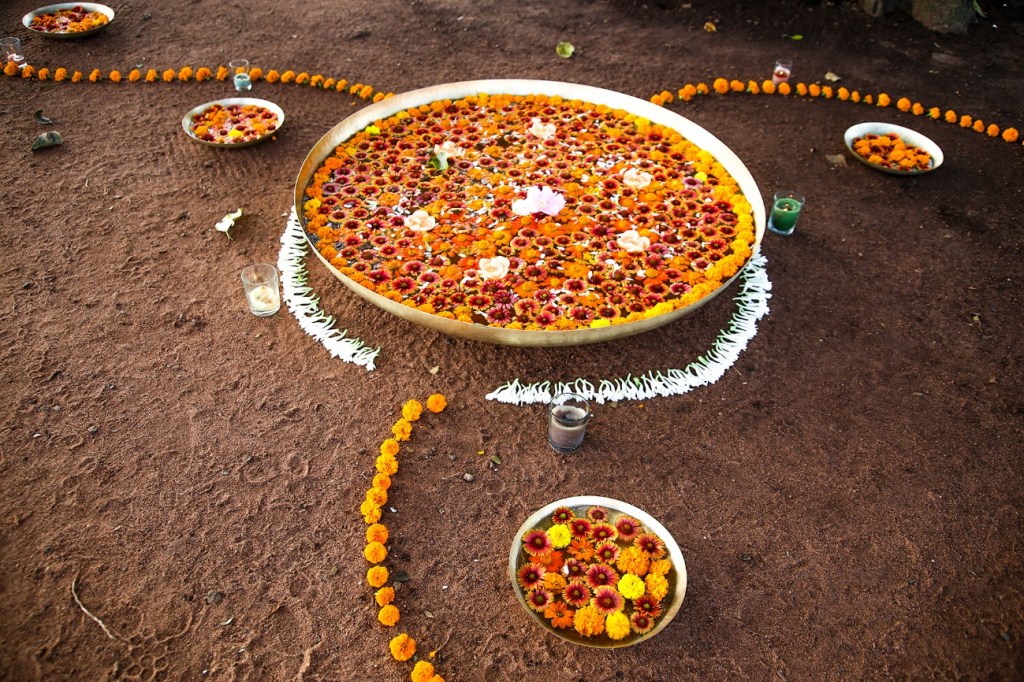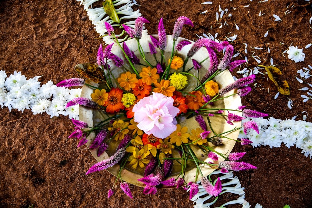 Beautiful flower decorations. Beautifying and worshiping earth, nature and whole atmosphere there.