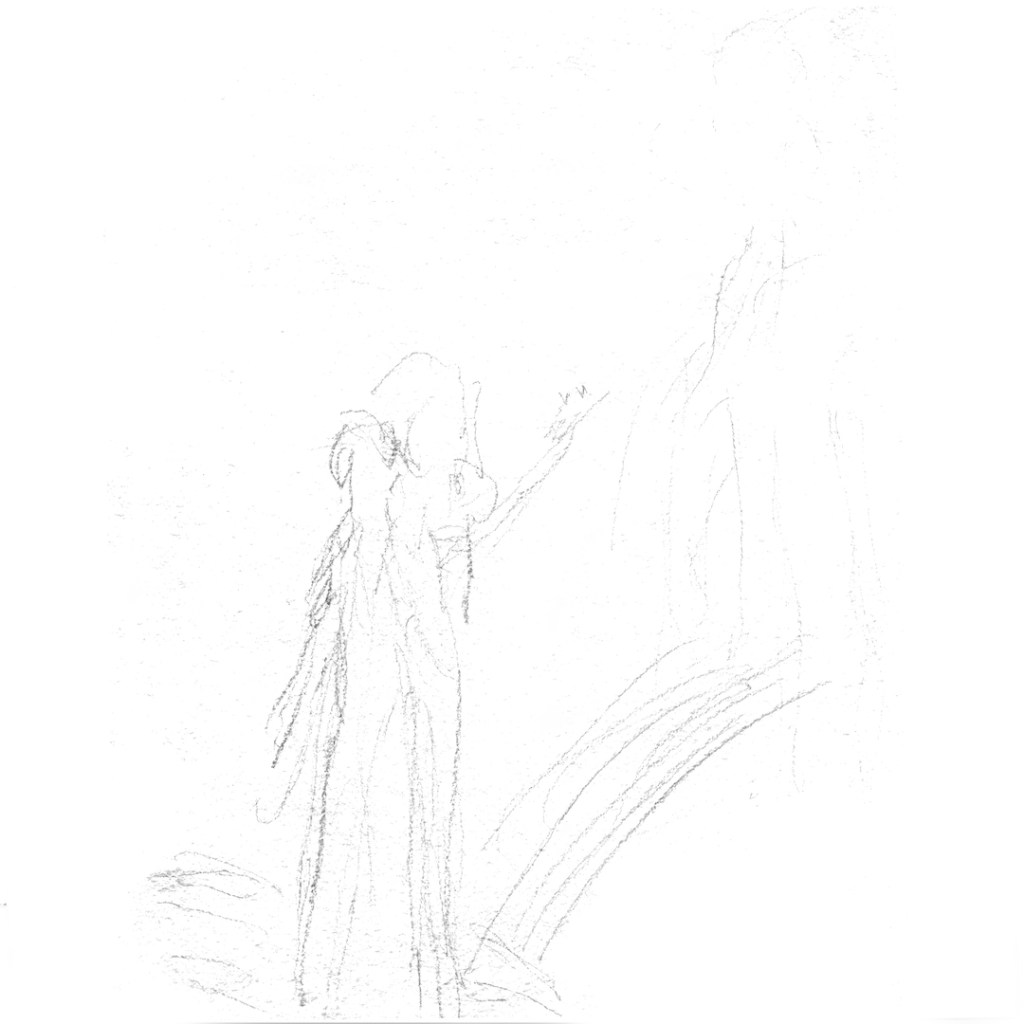 The featured image is a painting by Huta. Here is the sketch drawn by the Mother: