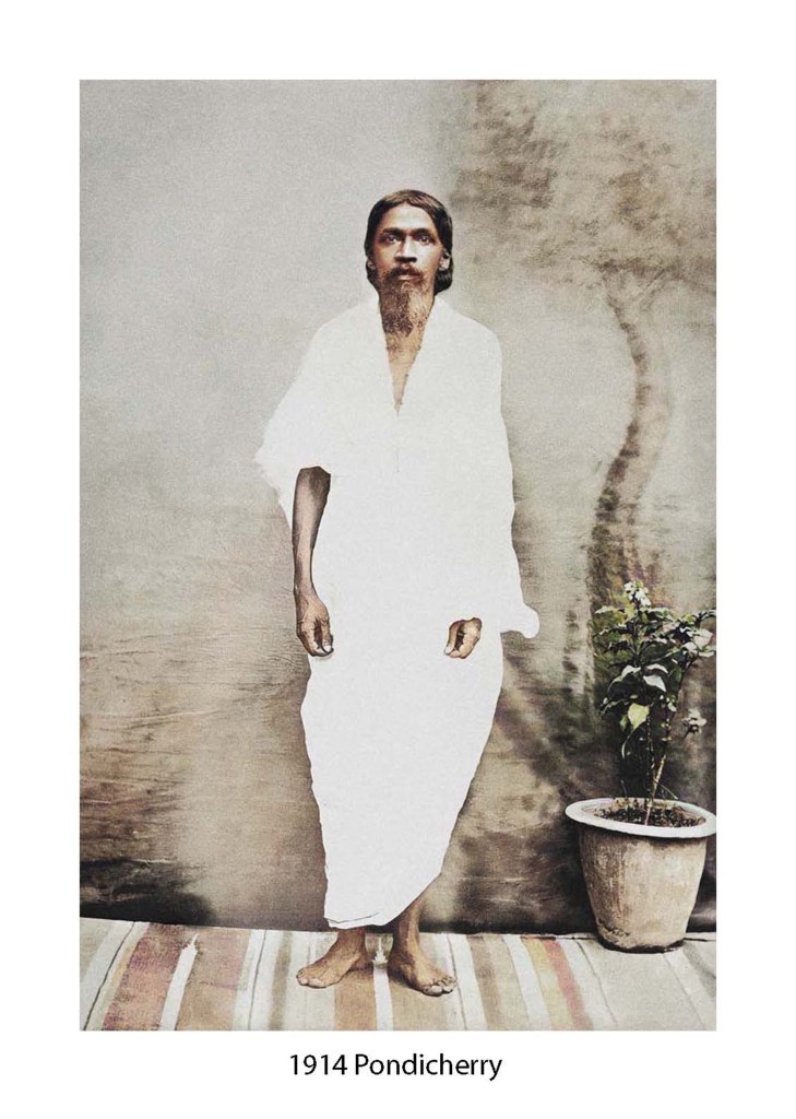 The featured image at the beginning is a wonderful painting by Huta, Book Six Canto One, # 5, very inspired. It is reminiscent of the Photo of Sri Aurobindo taken in 1914 in the Guest House, 41 Rue François Martin Pondicherry. But in the context of the “vast business of created things” these two, we may say with some trepidation, do not quite go together: