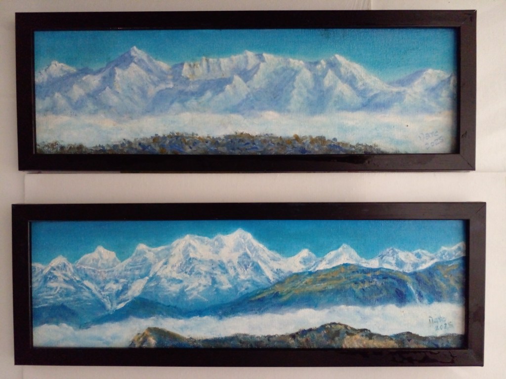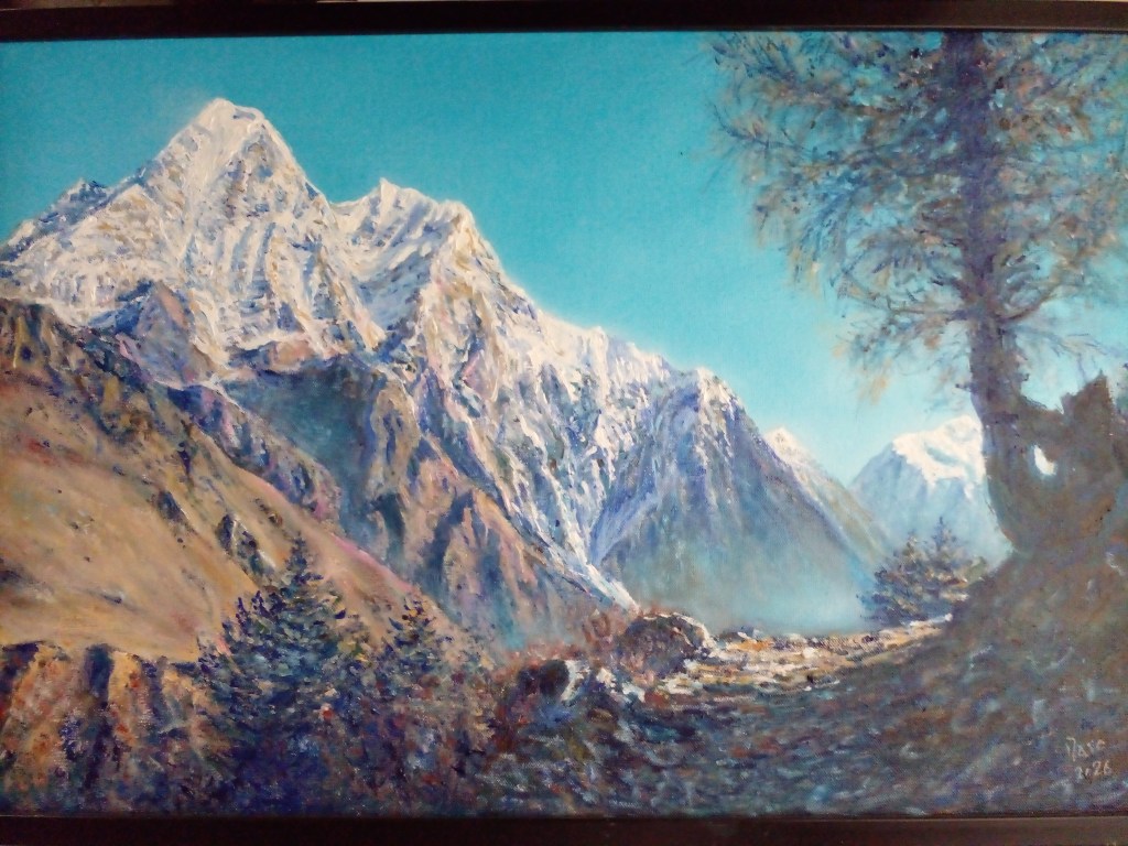 Uttarakhand ranges and Manaslu peak — oil painting on canvas board, average size 60x 40, with some variations.